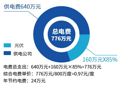 電費對比 (假設供電公司電價為1元/度,按用戶每年用電800萬度計算)
