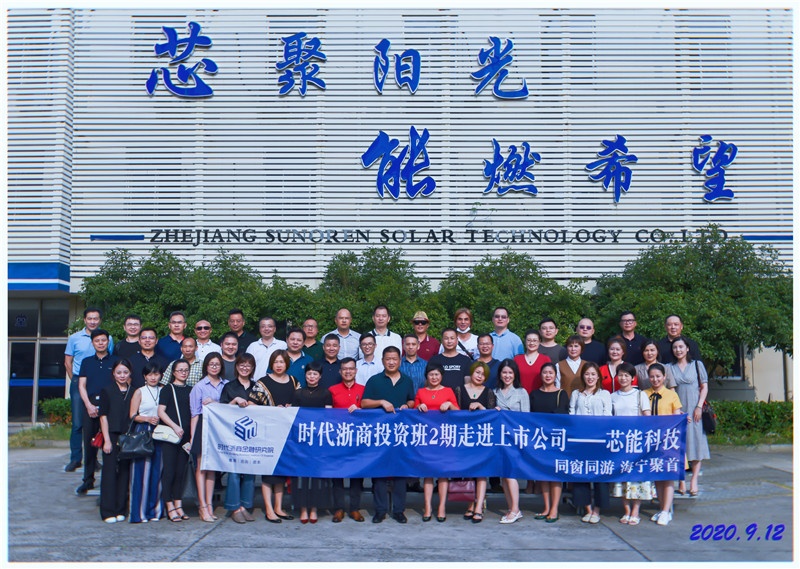 2020年9月12日,時代浙商金融研究院投資實戰班2期學員蒞臨芯能科技參觀考察。投資實戰班學員們一行首先前往浙江美大實地考察分布式電站項目,通過項目負責人的詳細介紹,學員們對分布式光伏電站系統結構原理、項目優勢、投資效益和未來發展前景等方面有了全面的了解。