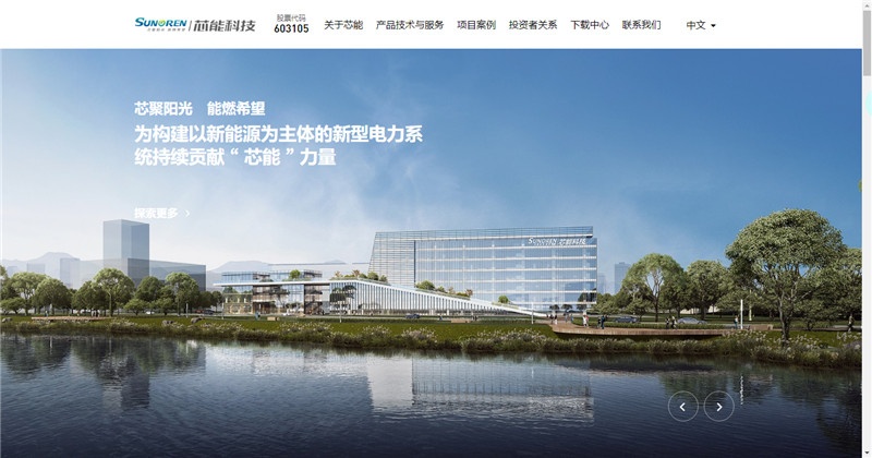 新版官網布局清晰、內容豐富,設置了關于芯能、產品技術與服務、項目案例、投資者關系、下載中心、聯系我們、新聞資訊、職業發展八大板塊,為客戶全方位展現生動且多維度的芯能科技。