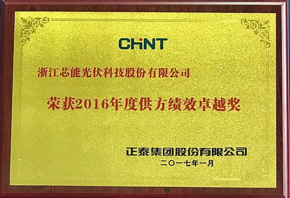 日前,芯能科技榮獲正泰集團股份有限公司頒發(fā)的2016年度供方績效卓越獎。正泰集團作為國內(nèi)的優(yōu)秀企業(yè),近年來一直是浙江乃至中國“走出去”企業(yè)的典范,其在光伏行業(yè)的影響力與日俱增。正泰集團下屬新能源企業(yè)成立初期,芯能科技便與之建立起合作關(guān)系。多年來,芯能科技憑借多晶硅片的優(yōu)異性能、穩(wěn)定質(zhì)量和長期可靠性贏得了正泰的高度認(rèn)可和信賴,多次榮獲正泰頒發(fā)的優(yōu)秀供應(yīng)商等榮譽獎項。同時雙方在多個領(lǐng)域保持著戰(zhàn)略合作伙伴關(guān)系,在包括項目開發(fā)、技術(shù)研發(fā)等領(lǐng)域開展深度合作。