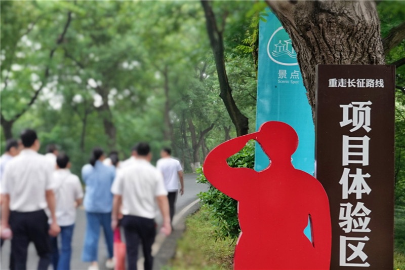 隨后,黨員們前往錢江百里長廊紅色教育基地,快速徒步8公里,體驗當年紅軍行軍的艱辛,也在此過程中感嘆新時代美好生活的來之不易,珍惜浪花淘盡英雄換來的幸福時刻??村X江潮水滾滾而過,緬懷仁人志士前赴后繼的奉獻精神?!靶坳P漫道真如鐵,而今邁步從頭越。”紅軍就是憑著堅定的意志和信念,走過萬里長征路,最終才取得革命勝利。每一次傾聽歷史,總能獲得前行的動力,黨員們的信仰也愈加堅定。