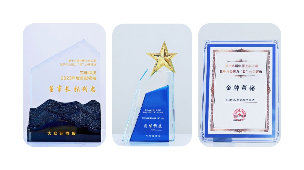 近日,由《大眾證券報》主辦的“第十八屆中國上市公司競爭力公信力‘星’公司評選”獲獎榜單正式發(fā)布。芯能科技(603105.SH)榮獲2023年度綠色發(fā)展“星”公司;董事長張利忠先生榮獲2023年度卓越領袖;副總經理兼董事會秘書張健先生榮獲2023年度金牌董秘。